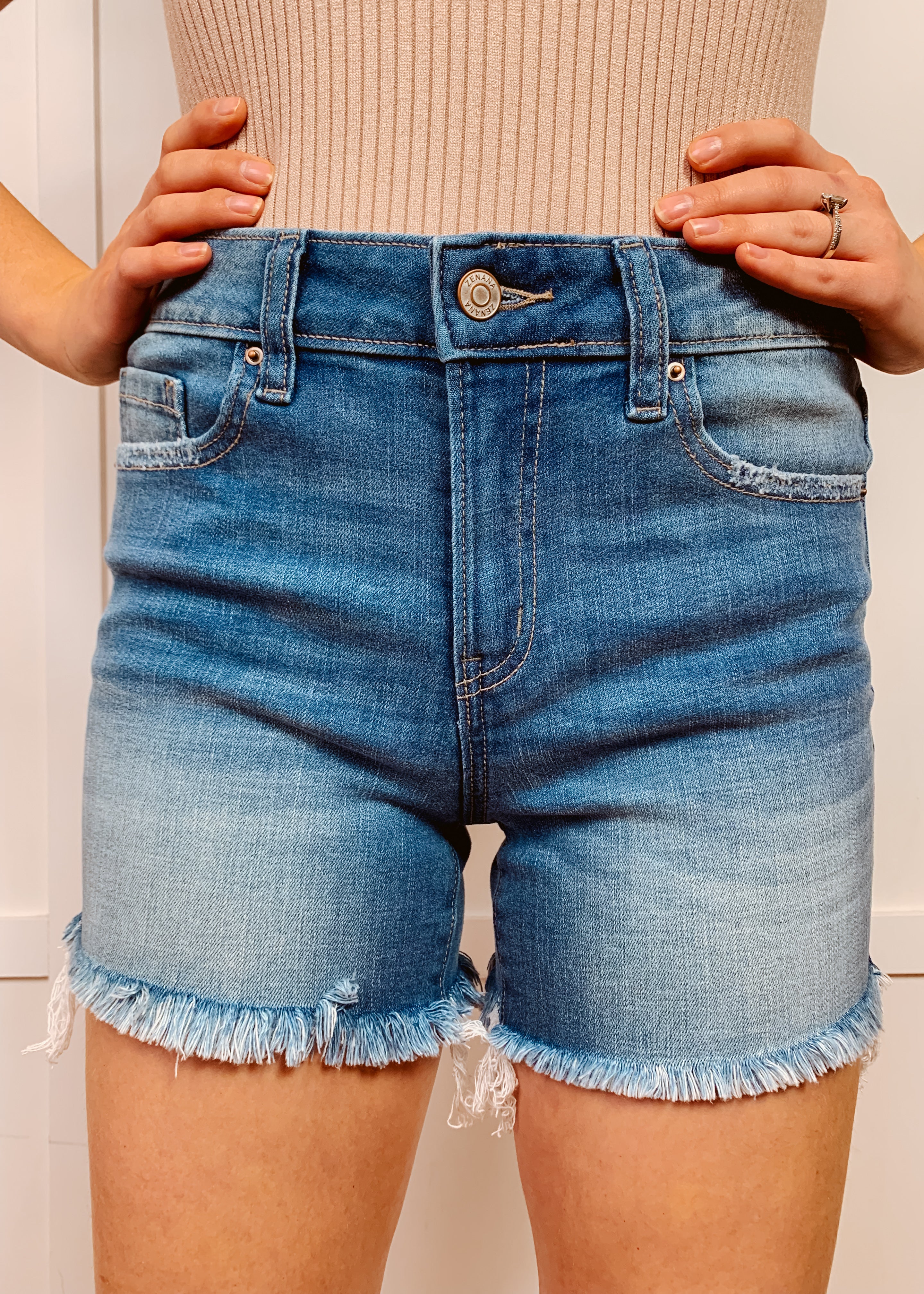 The Brooke Zenana Mid Rise Denim Shorts are a must-have addition to any wardrobe this summer. Featuring a raw frayed hem and medium wash. The fabric is highly stretchy and ensures a perfect fit every time. Style with your favorite
