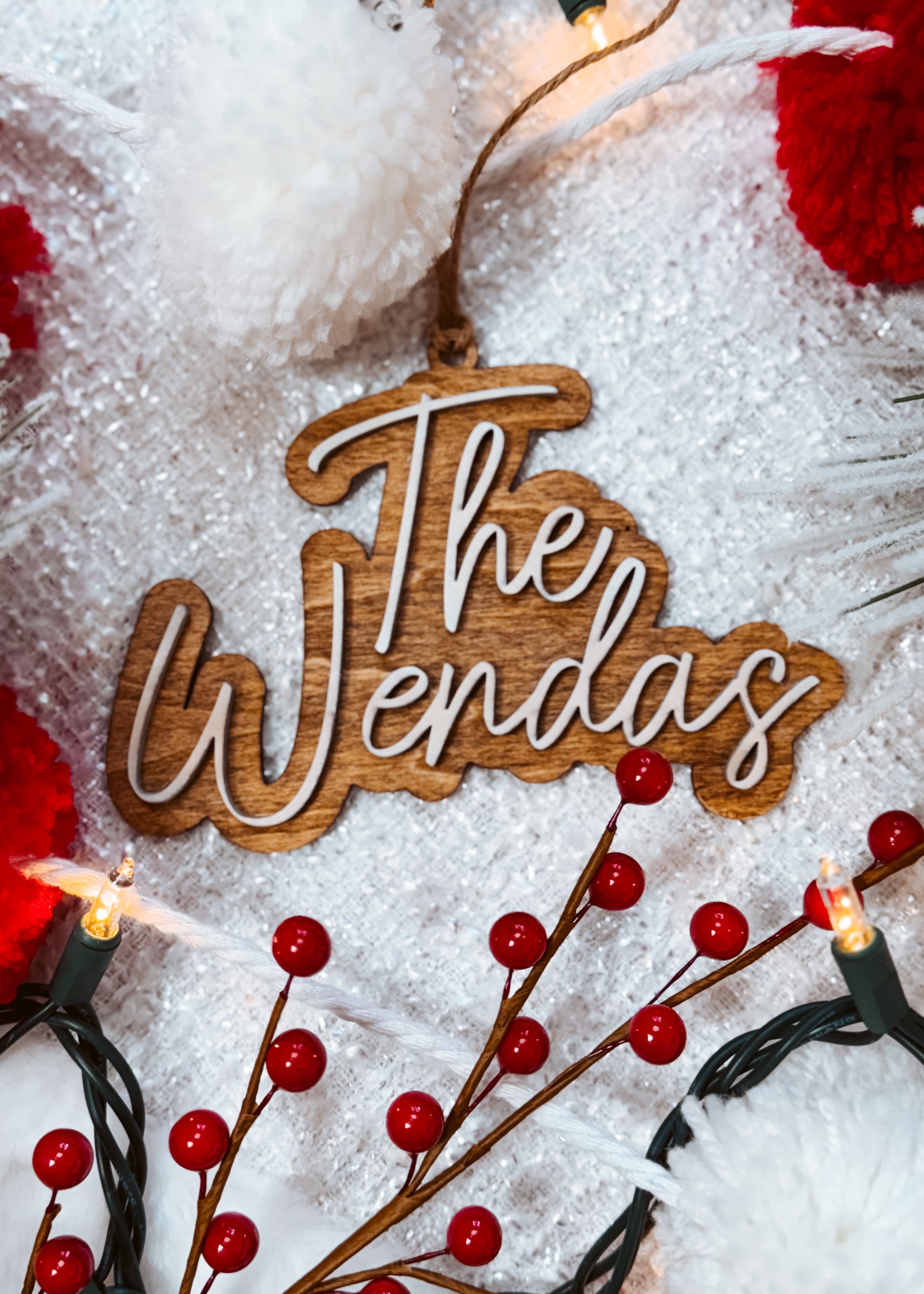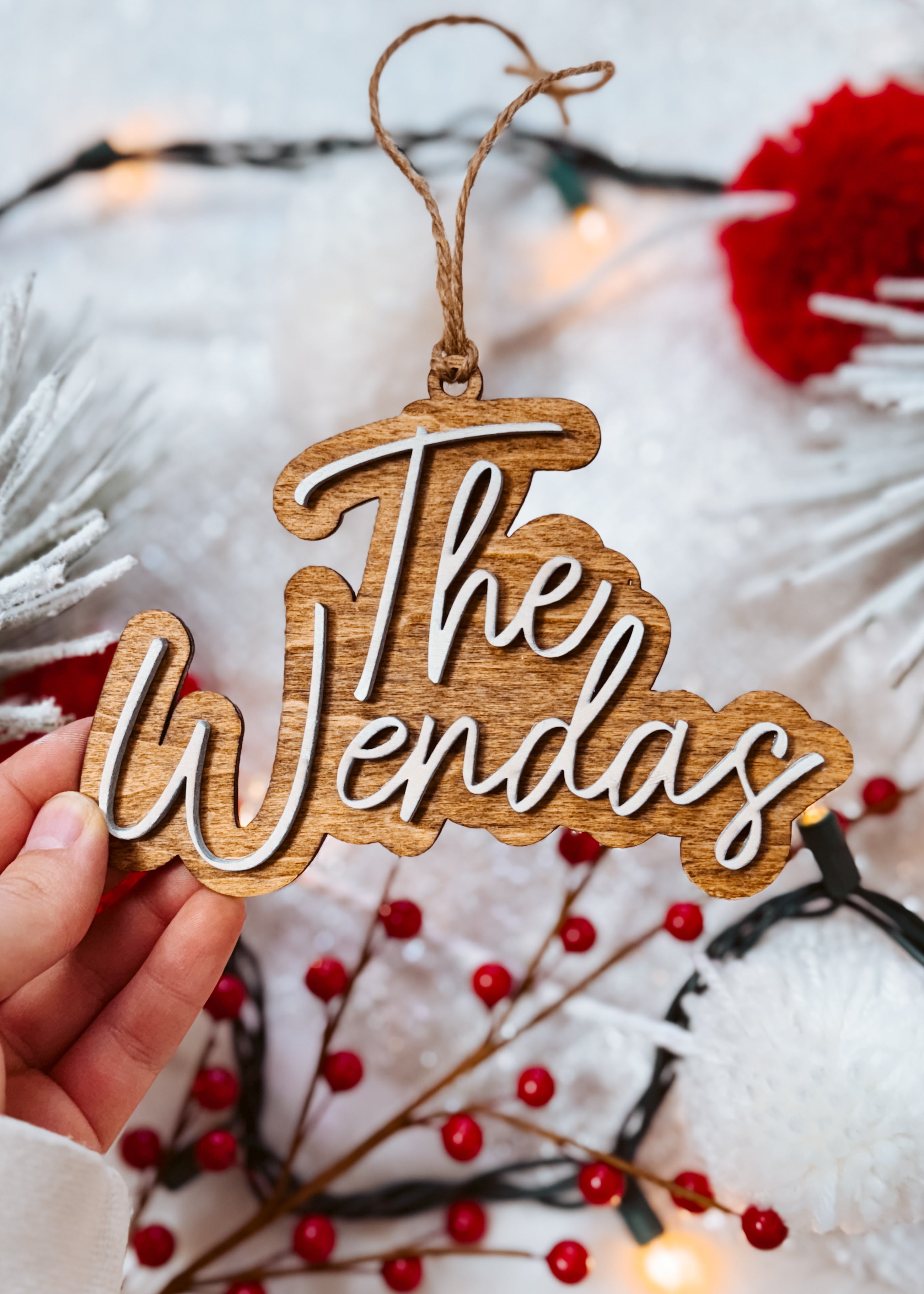 Wooden Personalized Family Name Ornament **PLEASE ADD NAME IN CART UNDER "ORDER NOTE" BEFORE YOU CHECKOUT**