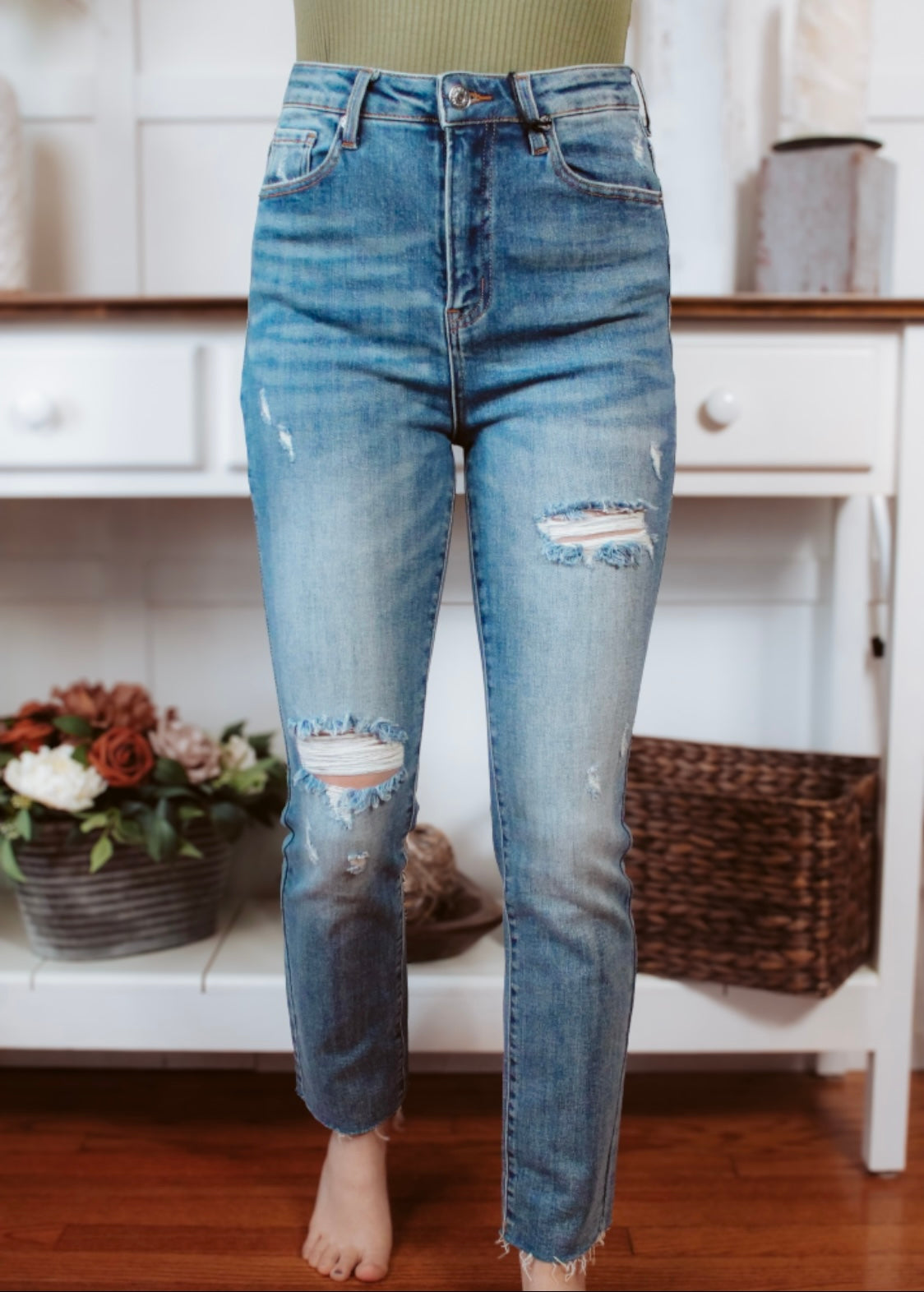 Chelsey Risen High Rise Distressed Skinny Jeans