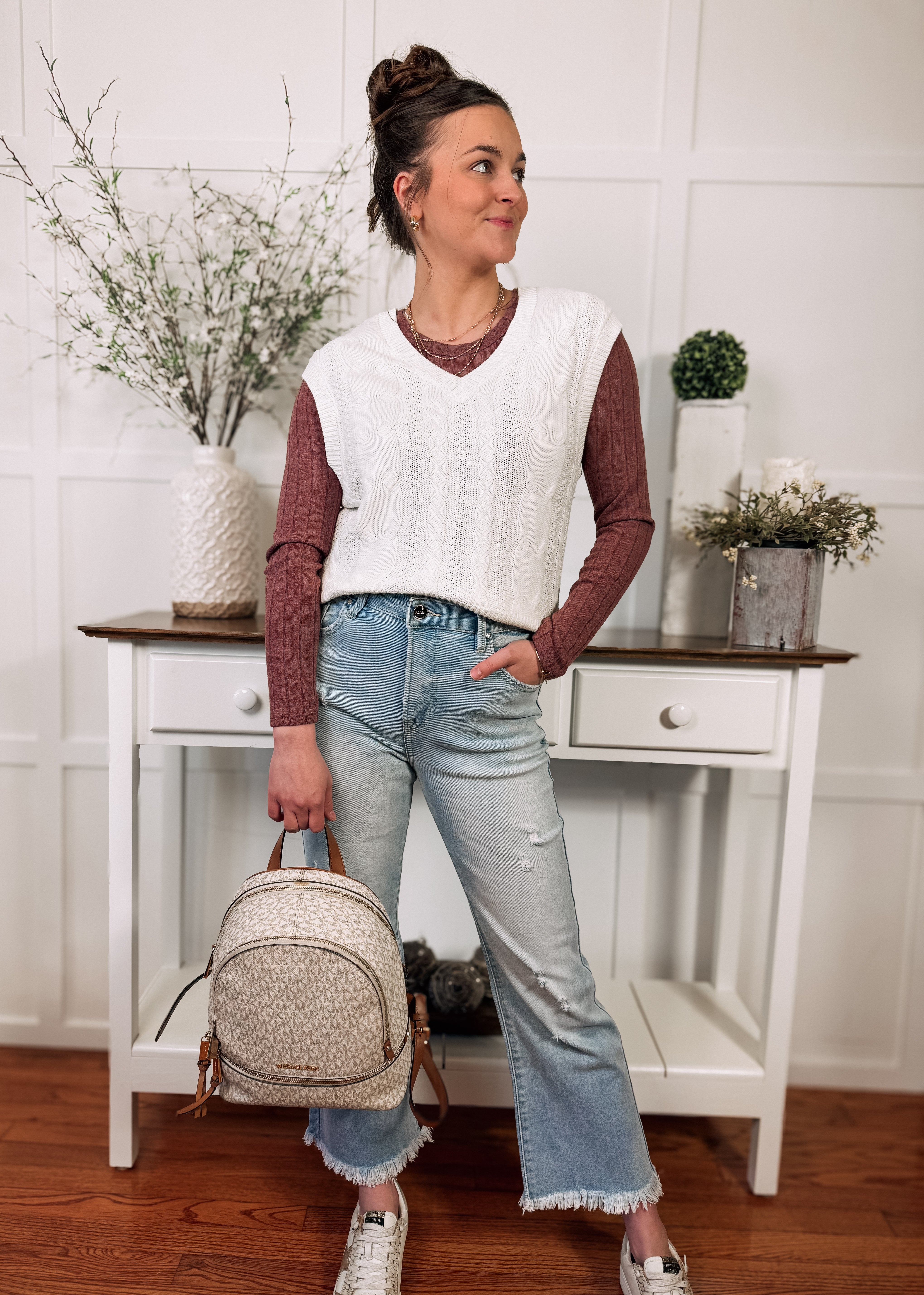 - White cable knit vest