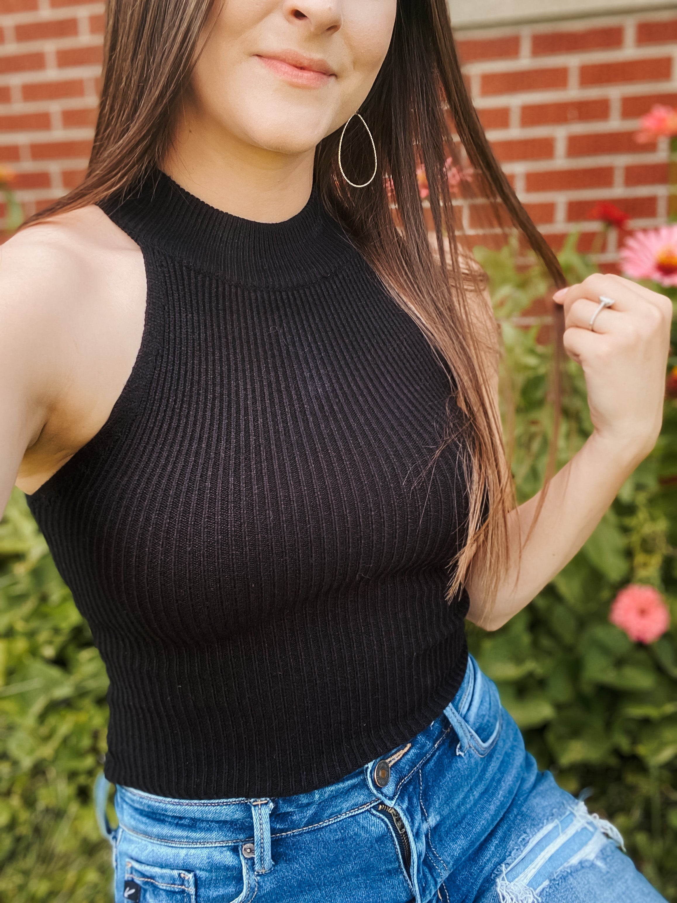 This Lillian Black Tank is the perfect top to layer under other garments. It is designed with a ribbed fabric and high neckline for a timeless look that won't go out of style. Upgrade your wardrobe with this stylish and comfortable tank top.